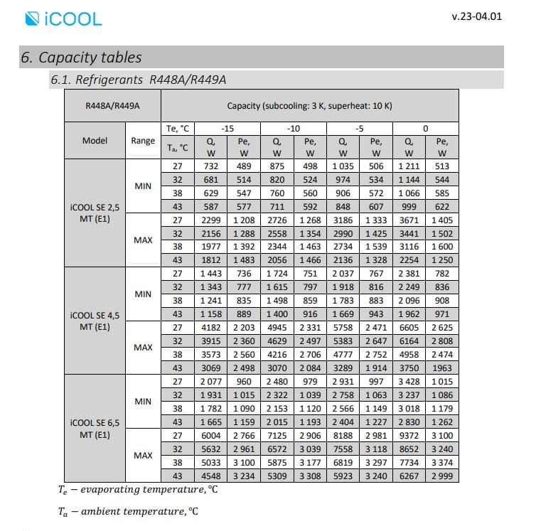 | Kompatybilne czynniki chłodnicze | R404A, R448A, R449A, R134A, R513A |