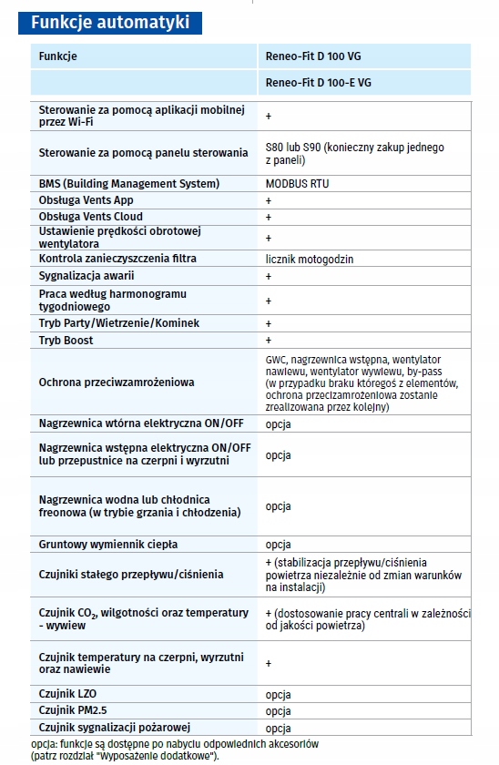 Seria Reneo-Fit D jest wyposażona w system sterowania. Należy zakupić panel S80 lub S90. Automatyka umożliwia integrację centrali z systemem BMS. Aplikacja Vents Cloud daje możliwość zdalnego sterowania centralą.