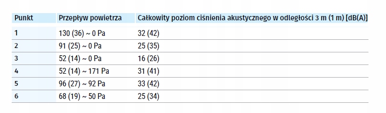 - Maksymalny przepływ powietrza [m³/h(l/s)]: 130 (36)