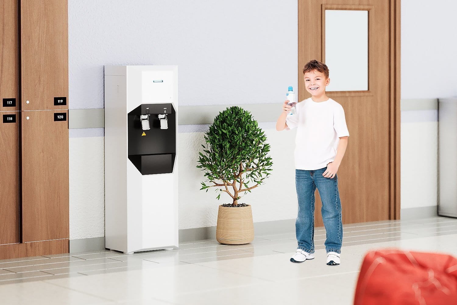 Dystrybutor AQUAPHOR RO PRO 100 to zaawansowany system uzdatniania wody, który przetwarza wodę z kranu w krystalicznie czystą wodę pitną o doskonałym smaku i jakości, eliminując konieczność zakupu wody butelkowanej. Urządzenie wykorzystuje technologię odwróconej osmozy (RO) wraz z lampą UV do dezynfekcji wody, co pozwala skutecznie usuwać toksyny, metale ciężkie, pestycydy, chlor oraz mikroorganizmy, w tym bakterie i wirusy. Membrana RO jest wspierana przez innowacyjny wkład filtrujący Pro 1 z opatentowaną technologią CarbFiber block i włóknami AQUALEN™, co zwiększa efektywność filtracji i przedłuża żywotność membrany. Funkcja ECO automatycznie optymalizuje pracę urządzenia, zmniejszając zużycie energii. Woda po filtracji jest dodatkowo wzbogacana w wapń i magnez(mineralizacja), co poprawia smak i wspiera zdrowie. Aquaphor RO PRO 100 to idealne rozwiązanie dla biur, szkół, placówek publicznych oraz hoteli, zapewniając wygodny dostęp do sprawdzonej wody pitnej w każdych warunkach.