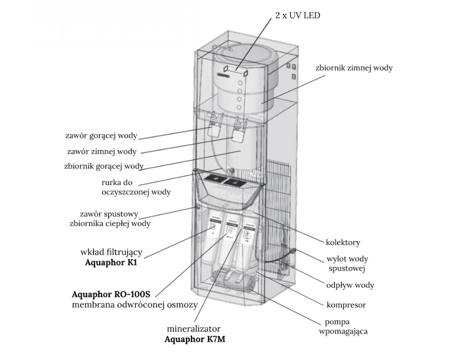 Typ urządzenia: Dystrybutor wody wolnostojący z UV i RO, Mineralizacja