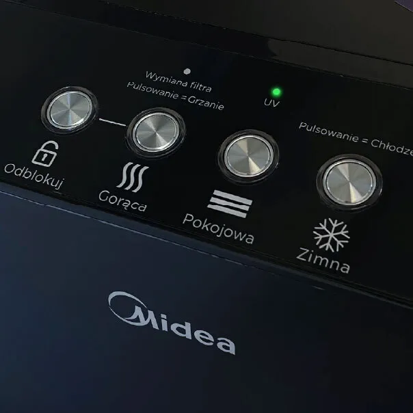 MIDEA JS1844T BLACK to bezbutlowy, nablatowy dystrybutor wody zaprojektowany z myślą o miejscach, w których liczy się najwyższy standard higieny. Wbudowana lampa UV-C LED pełni funkcję bakteriostatyczną, skutecznie ograniczając rozwój bakterii i wirusów w wodzie. Dodatkowe zabezpieczenia w postaci czujników przeciwzalaniowych (mechanicznych i elektronicznych) minimalizują ryzyko wycieku i zwiększają bezpieczeństwo codziennego użytkowania.