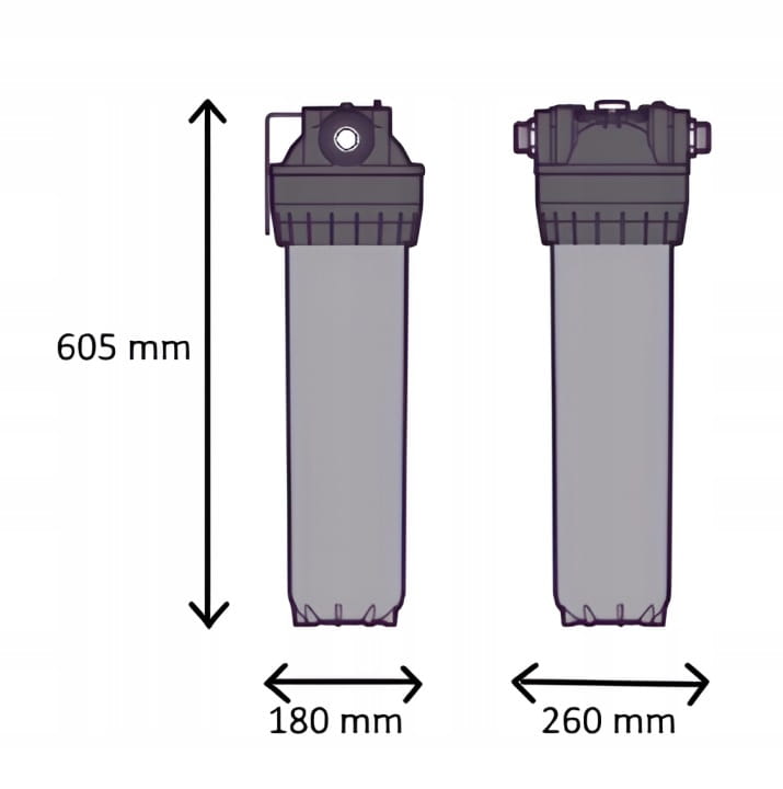 Dzięki zastosowaniu standardu Big Blue 20″, filtr zapewnia wysoką przepustowość oraz kompatybilność z szeroką gamą wkładów filtracyjnych.