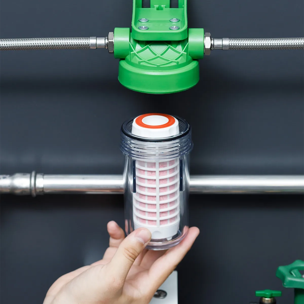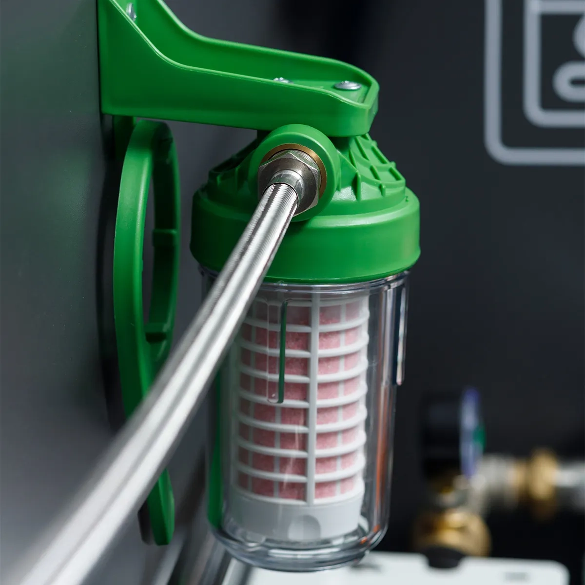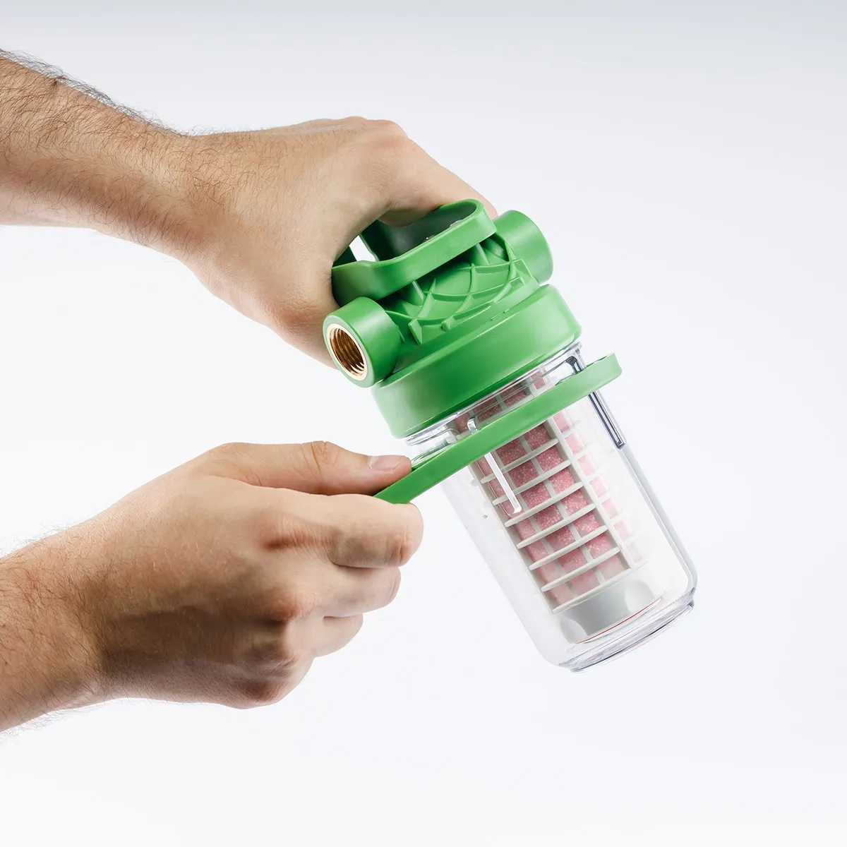 Obudowa filtra wykonana jest z trwałego materiału PET, odpornego na ciśnienie i zmienne warunki pracy, co zapewnia długą i bezawaryjną eksploatację. Zastosowany inhibitor kamienia oparty na ekologicznym materiale filtracyjnym działa bez użycia soli i chemikaliów, zachowując naturalny skład mineralny wody.
