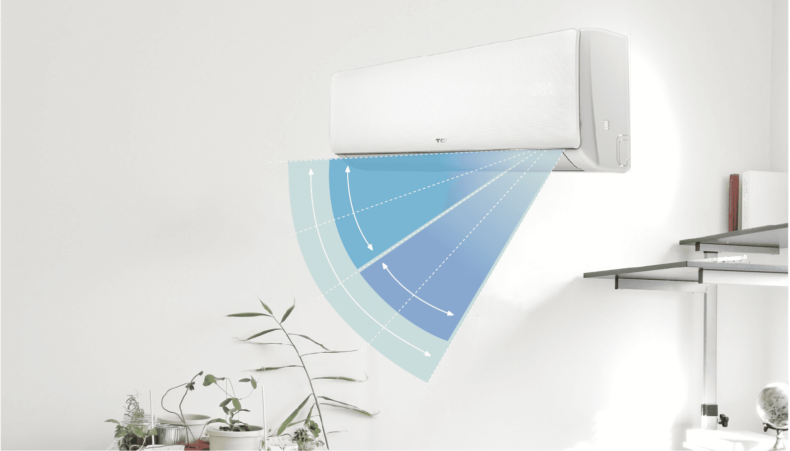 | W trybie automatycznym liczba i czas trwania cykli odszraniania jest zmniejszana, aby zapobiec zamarzaniu wymienników ciepła (tworzeniu się szronu), zapewniając stabilną pracę urządzenia w zadanym trybie. | Do wyboru jest 8 trybów kierunku przepływu góra-dół: 5 trybów stałego położenia i 3 tryby kołysania. |