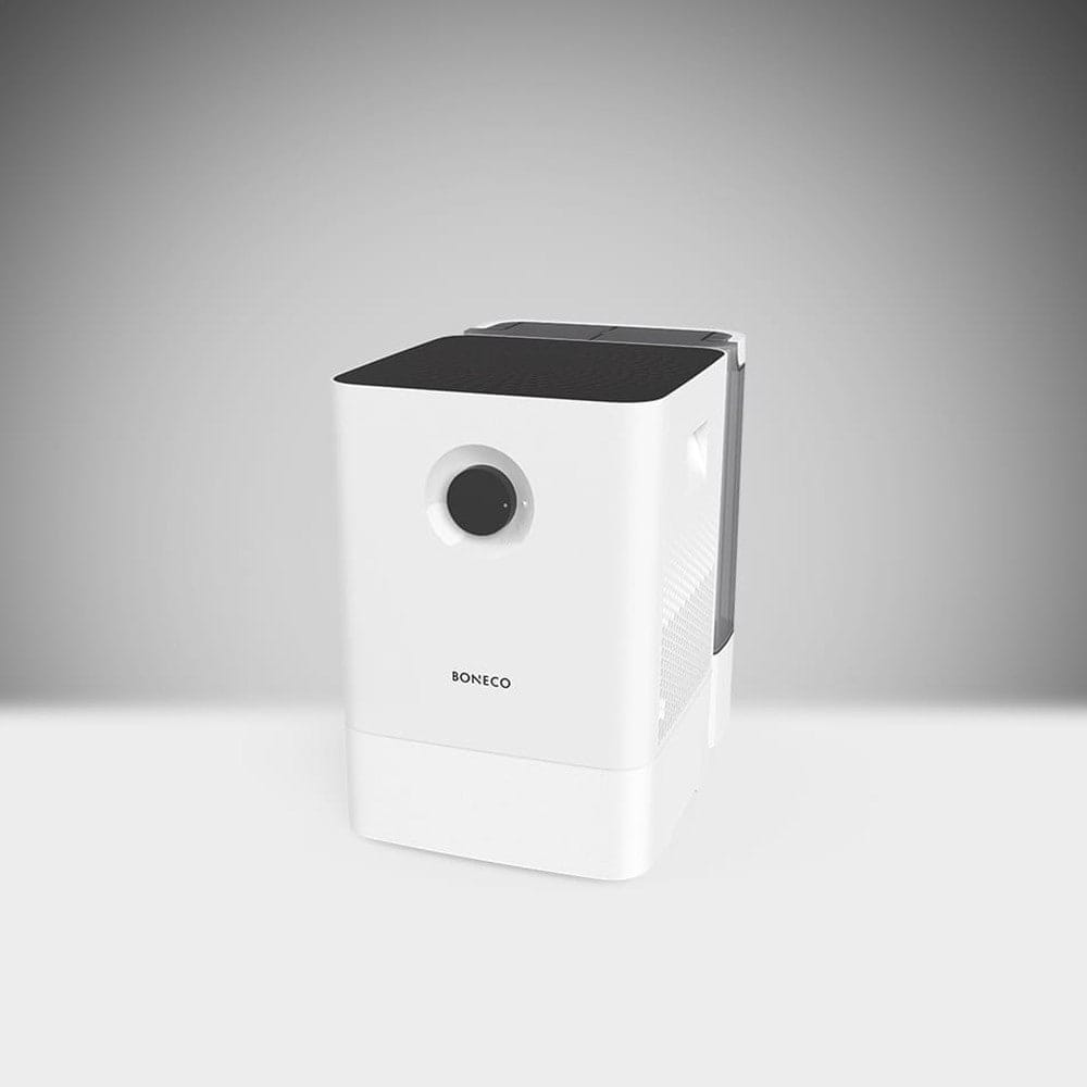 Boneco W300 to nowoczesny nawilżacz powietrza z technologią ewaporacyjną, zaprojektowany z myślą o stabilnym, zdrowym i bezpiecznym nawilżaniu powietrza w mieszkaniach, domach oraz przestrzeniach biurowych. Urządzenie działa w oparciu o naturalny proces odparowywania wody, dzięki czemu wilgotność w pomieszczeniu wzrasta dokładnie do takiego poziomu, jaki jest możliwy i potrzebny — bez ryzyka przewilżenia.