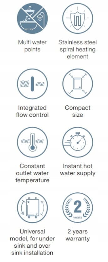 ✔ natychmiastowe podgrzewanie wody bez zbiornika