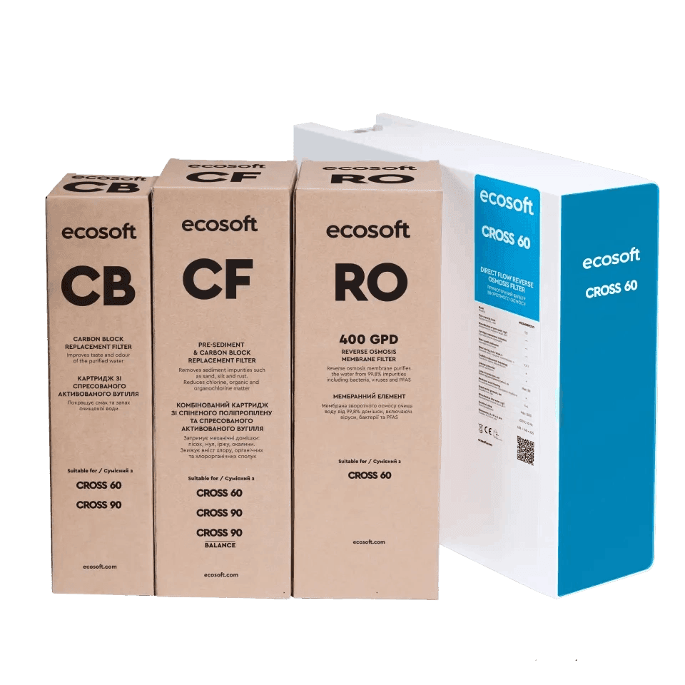 Ecosoft CROSS 60 to zaawansowany system odwróconej osmozy typu direct flow, zaprojektowany z myślą o dostarczaniu krystalicznie czystej wody pitnej bezpośrednio pod zlew, bez konieczności stosowania zbiornika magazynującego. Dzięki kompaktowej konstrukcji i inteligentnej technologii, urządzenie łączy w sobie wysoką wydajność, bezpieczeństwo użytkowania oraz komfort eksploatacji, co sprawia, że jest idealnym wyborem zarówno dla małych gospodarstw domowych, jak i biur.