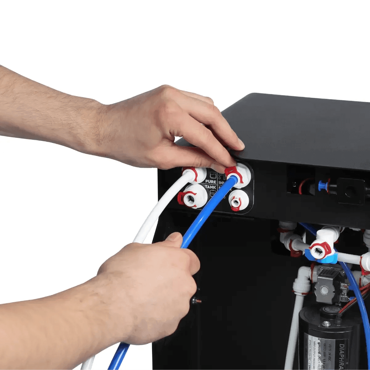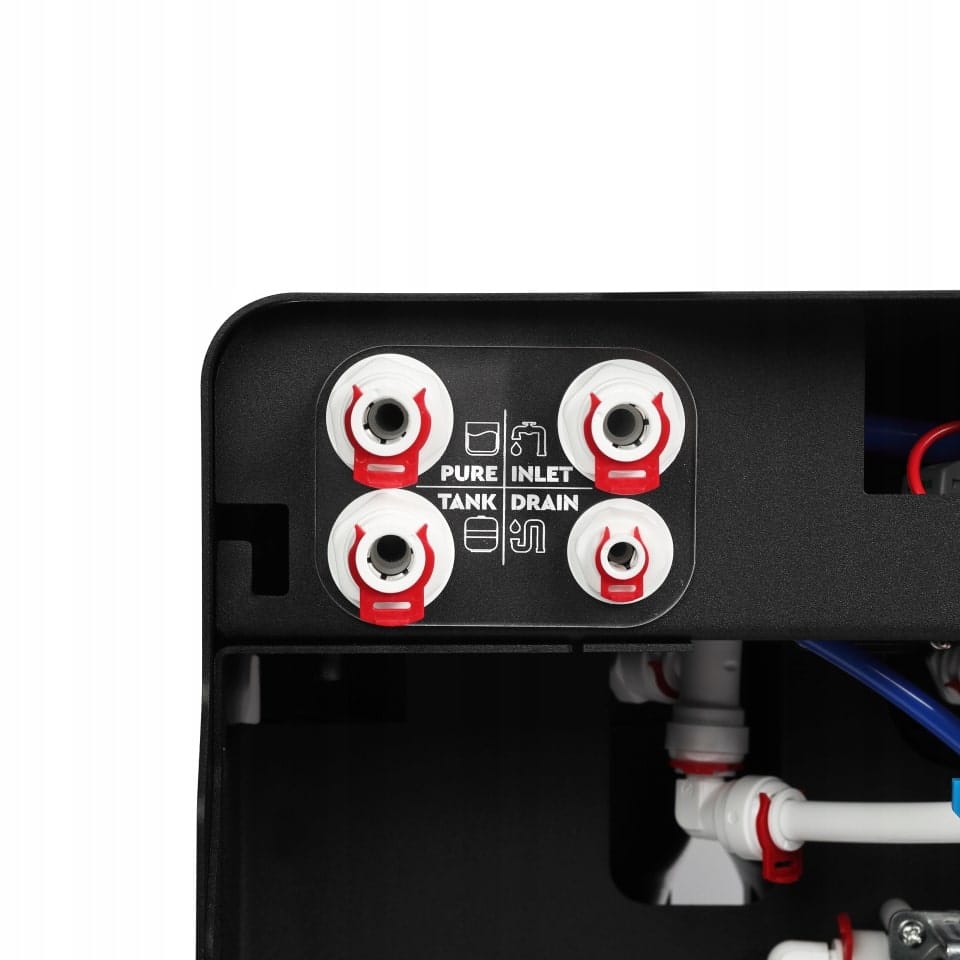 System produkuje wodę w sposób ciągły, co znacząco podnosi komfort użytkowania w porównaniu do klasycznych filtrów RO.