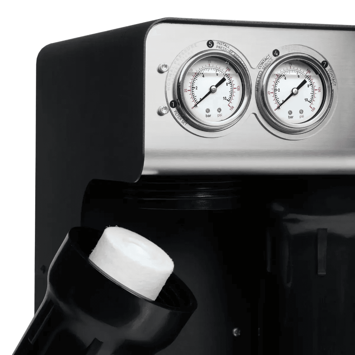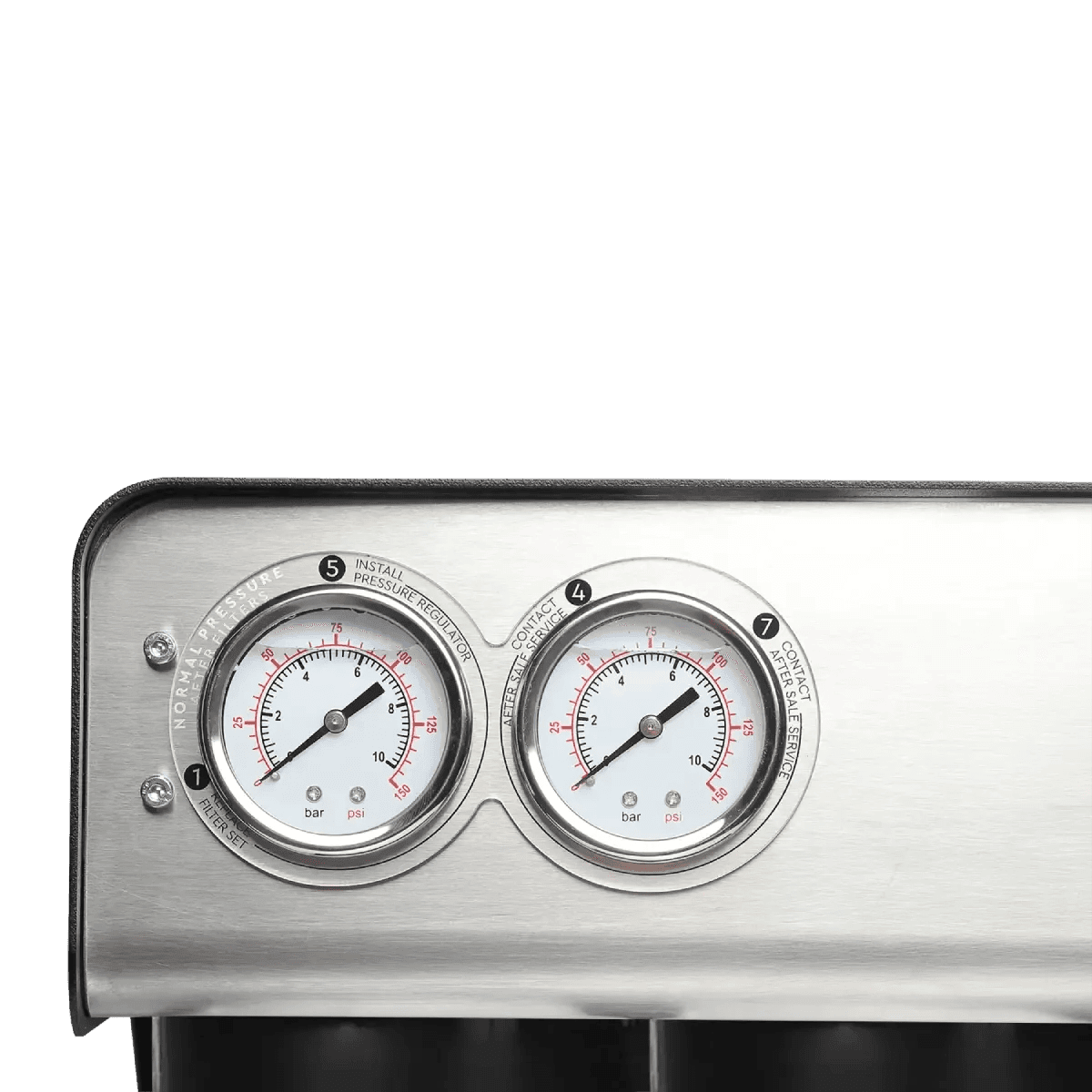 Urządzenie wyposażone jest w manometry, które umożliwiają bieżące monitorowanie ciśnienia i prawidłowej pracy systemu. Kompaktowa, solidna obudowa ułatwia montaż oraz serwisowanie, a przemyślany układ komponentów zapewnia długą i bezawaryjną eksploatację.