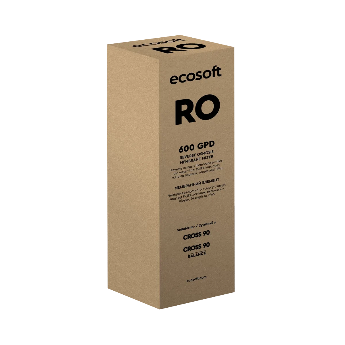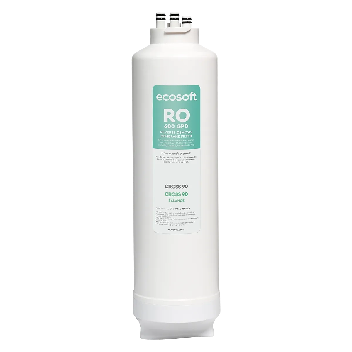 Wkład przeznaczony do domowych systemów odwróconej osmozy Ecosoft CROSS 90, stosowanych w gospodarstwach domowych, biurach oraz miejscach wymagających wysokiej wydajności i jakości wody pitnej.