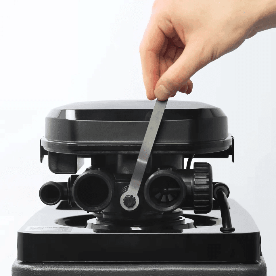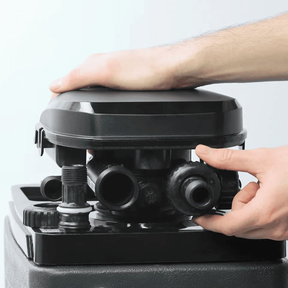 🔹 Głowica sterująca Clack® DV z zaworem mieszającym – precyzyjne, niezawodne sterowanie regeneracją i możliwością regulacji końcowej twardości wody.