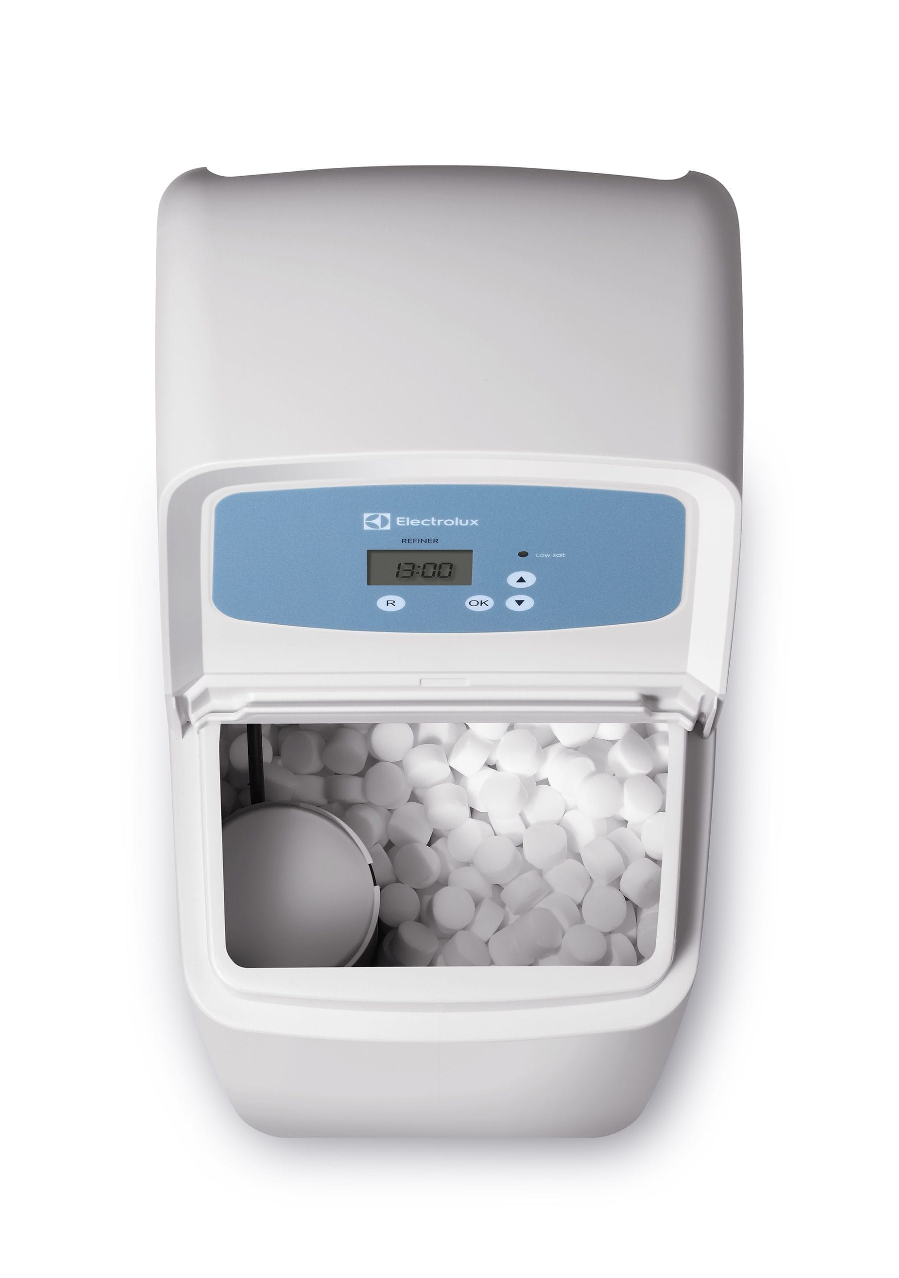 Urządzenie posiada wskaźnik niskiego poziomu soli oraz zasilanie 24V.