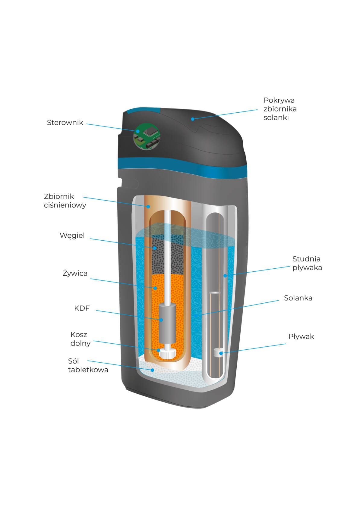 zmiękczacz wody – usuwa jony wapnia i magnezu odpowiedzialne za twardość wody,