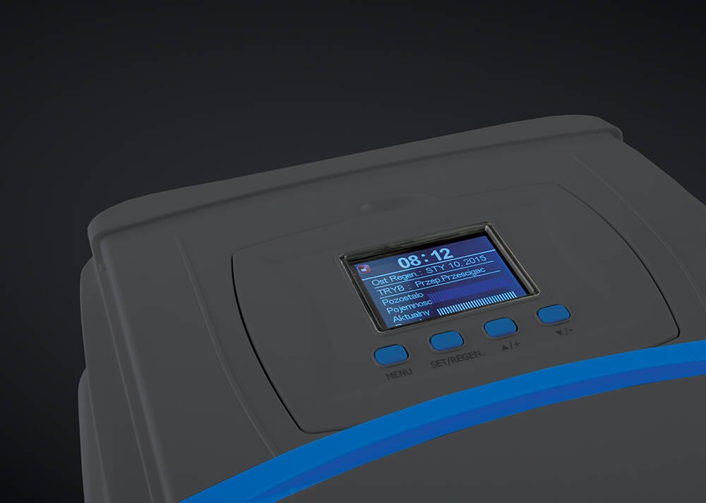Inteligentna głowica sterująca automatycznie dobiera cykle regeneracji w zależności od zużycia wody. Urządzenie działa praktycznie bezobsługowo.